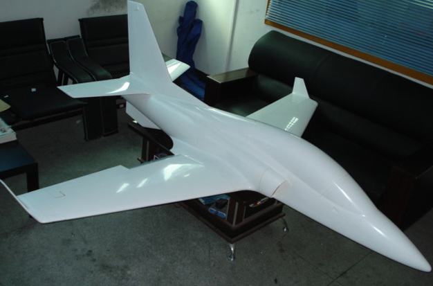 中VIPER 涡喷机机体为全复材制作,模具内喷漆,成型后表面光亮整洁,内部所有框架为合模前已安置好。