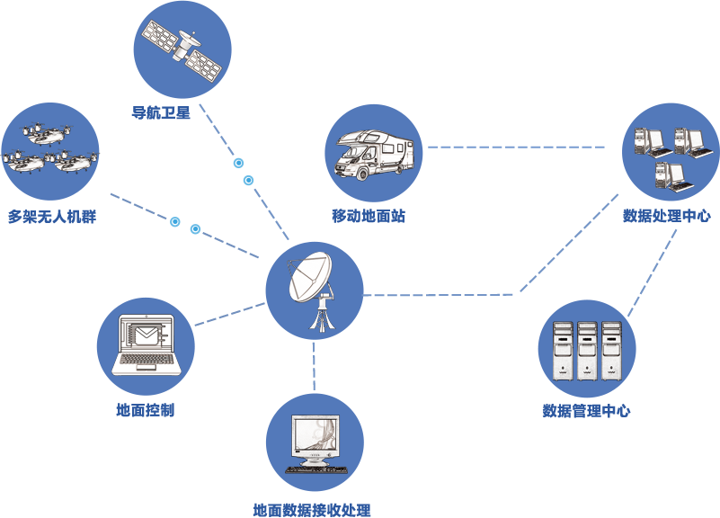 提供双向视频、语音、数据等业务,支持点对多点的网状组网及多机位控制无人机系统,具有分布式指挥调度、信息采集与处理、通信保障、地理信息显示与定位及远程可视化指挥功能。