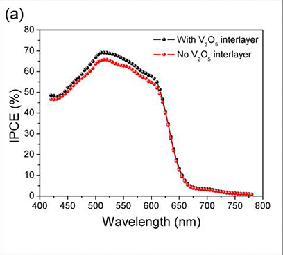 具有和不具有最佳V2O5夹层的器件的IPCE光谱。