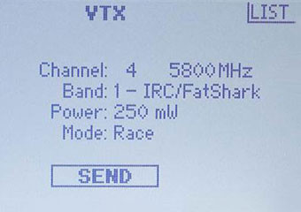 当放置在这个模式下时,Vortex 230 Mojo将在视频发射器关闭的情况下启动,并且只有当R / C发射器指示时才开始发射。使用右手杆来选择通道1..8,使用杆的极端运动。用于CH1,用于CH2的右移等