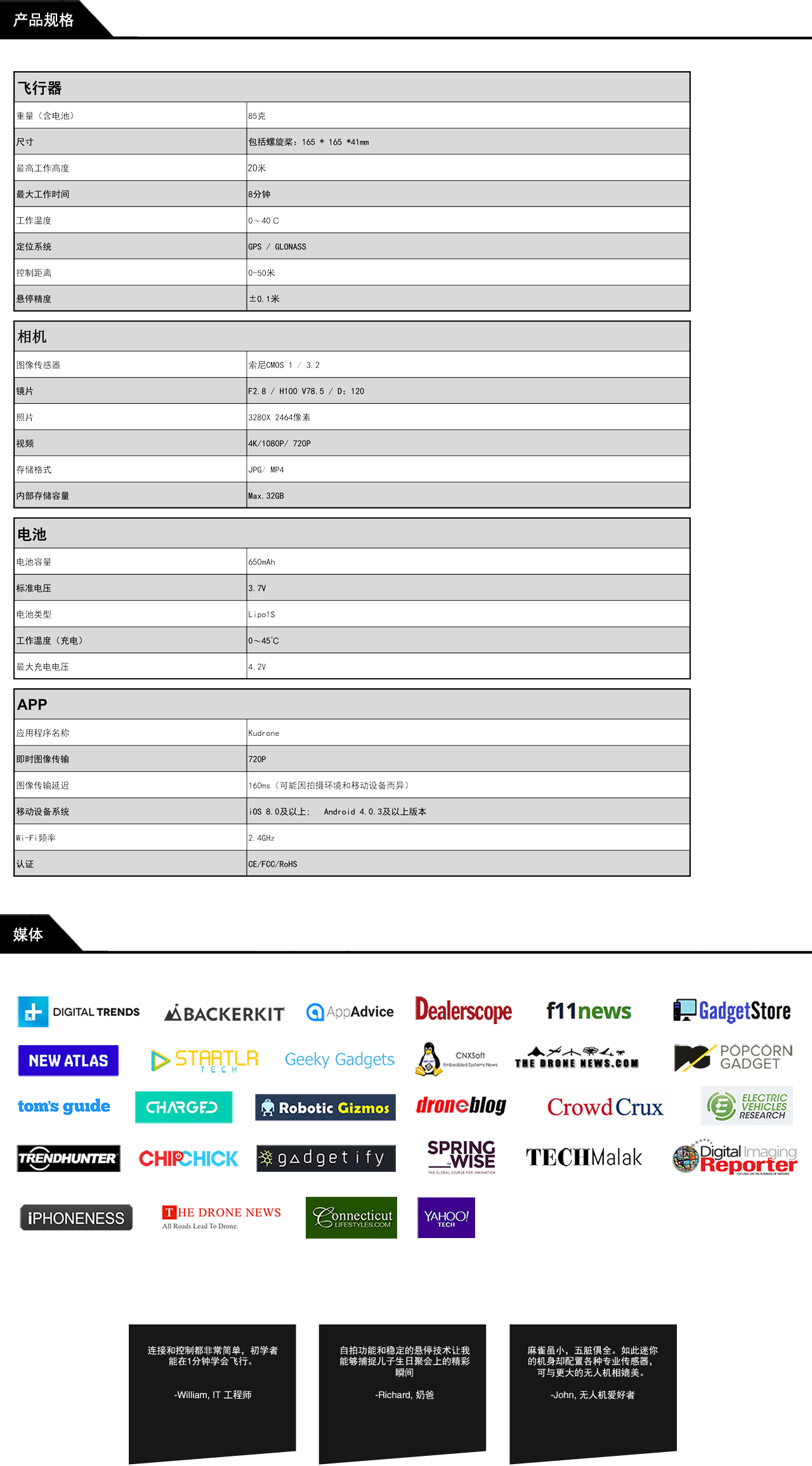 瑞恒 KUDRONE 智能掌上高清自拍无人机