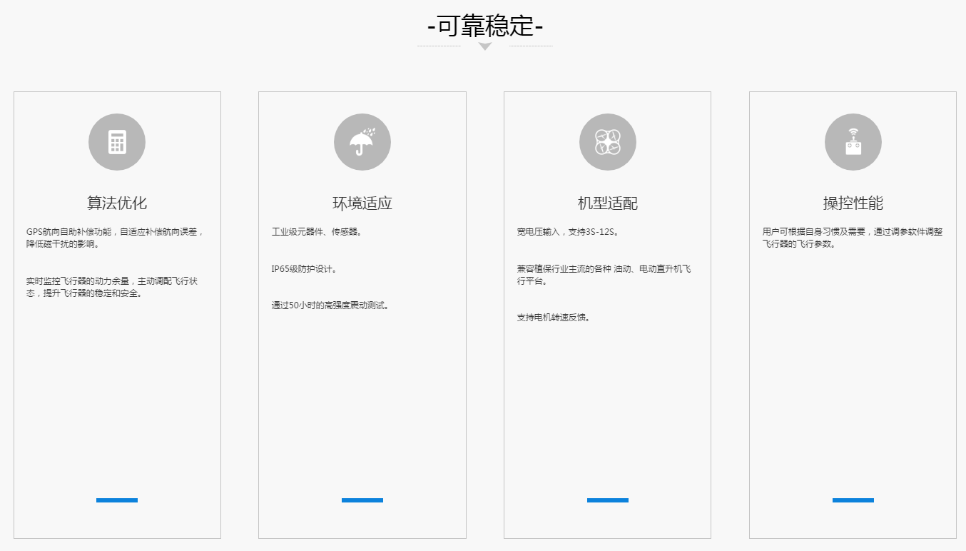 优化的控制导航算法,全面采用工业级传感器,严格的生产测试标准,赋予飞行器更高的可靠性。