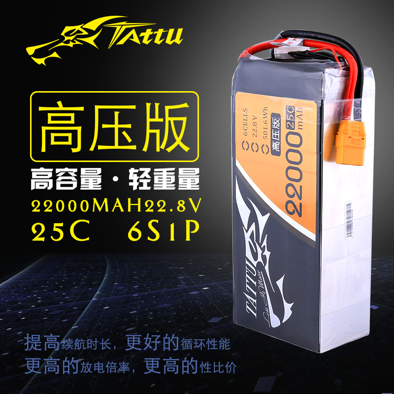 Tattu 22000mAh 25C 22.8V 高倍率锂电池无人机电池高压版适用六轴无人机、直升机、固定翼、航拍机、植保机和测绘等等飞行器机型。