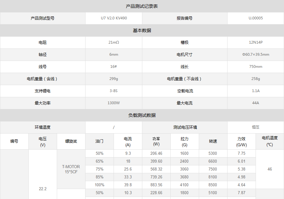 T-MOTOR U系列动力型电机 U7-V2.0 KV490
