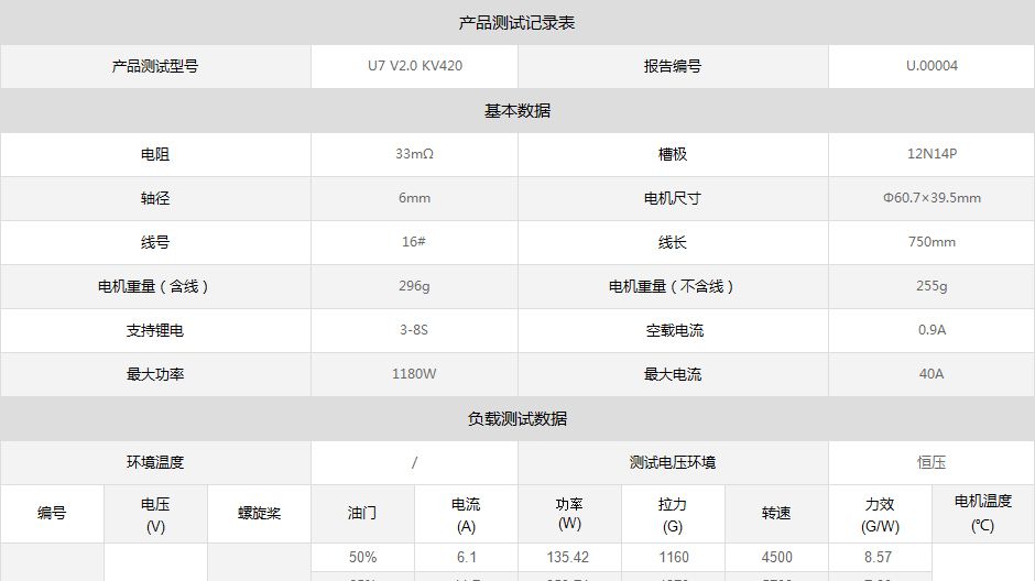T-MOTOR U系列动力型电机 KV120