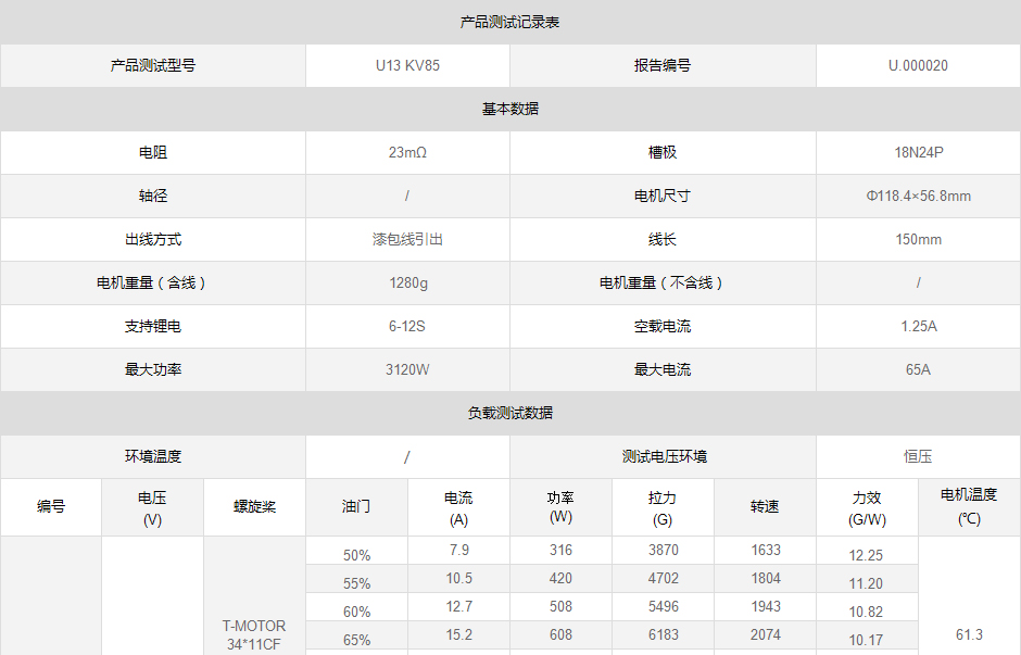 T-MOTOR U系列动力型电机 U15Ⅱ KV80