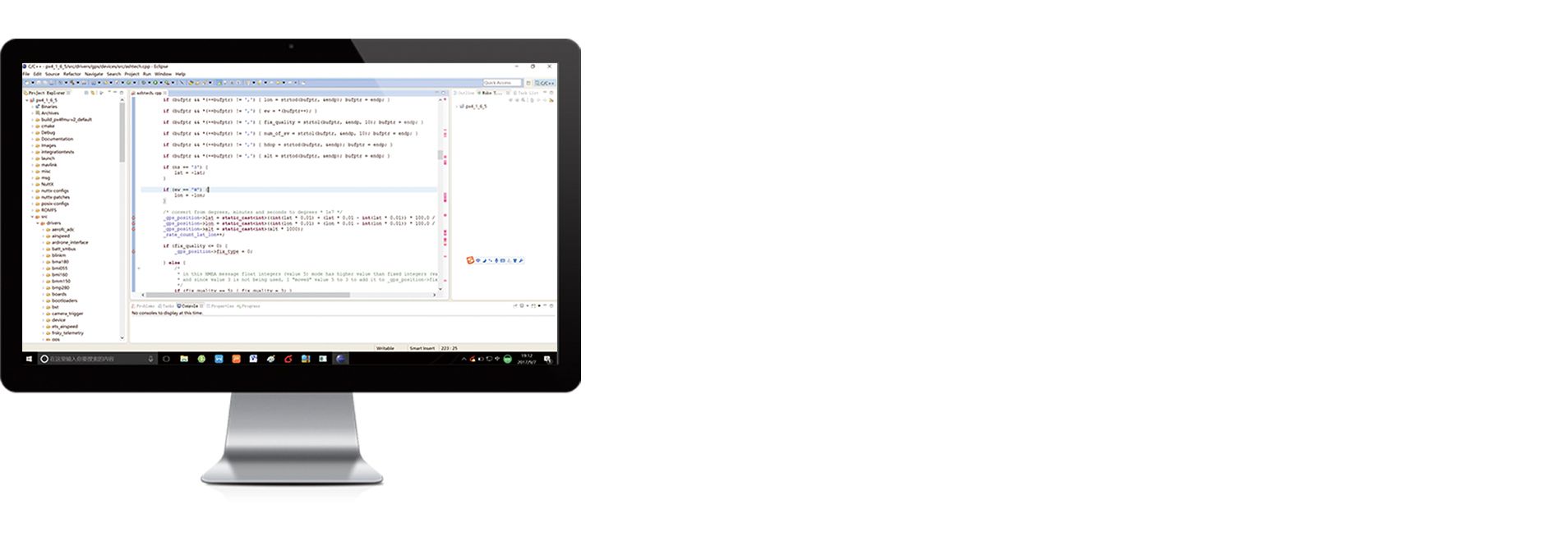 本系统提供飞控软件开发环境,基于Eclipse开发,可实现飞控算法的开发、编译和下载。