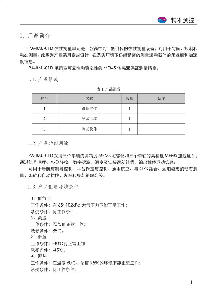 精准测控通用型数字惯性测量单元PA-IMU-01D系列