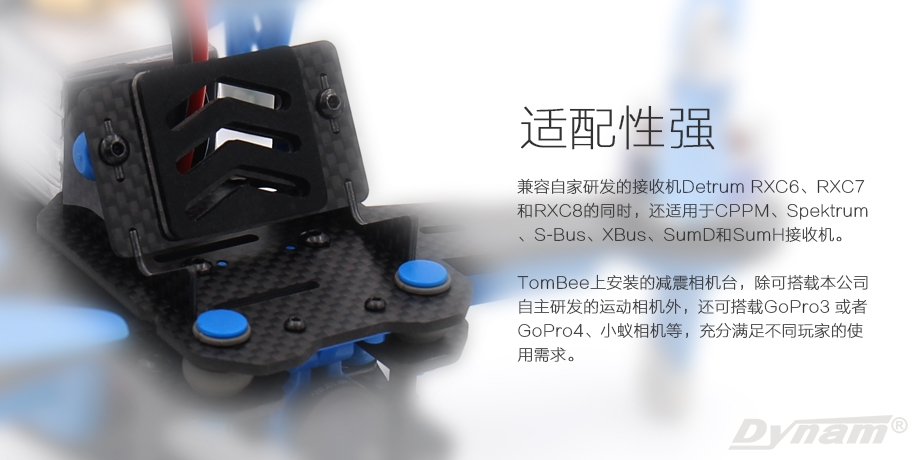 - 提供了两种相机固定架,可搭载GoPro 3/4相机或我司的D-CAM相机等,使用户可以选择更多的运动相机。