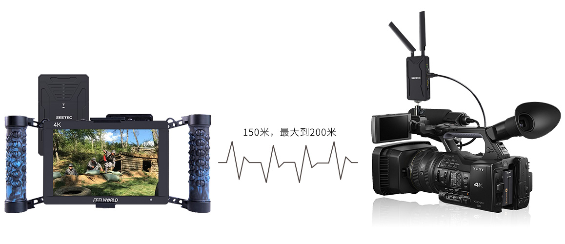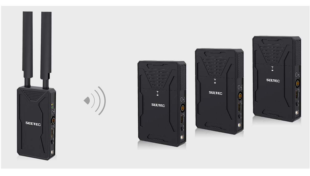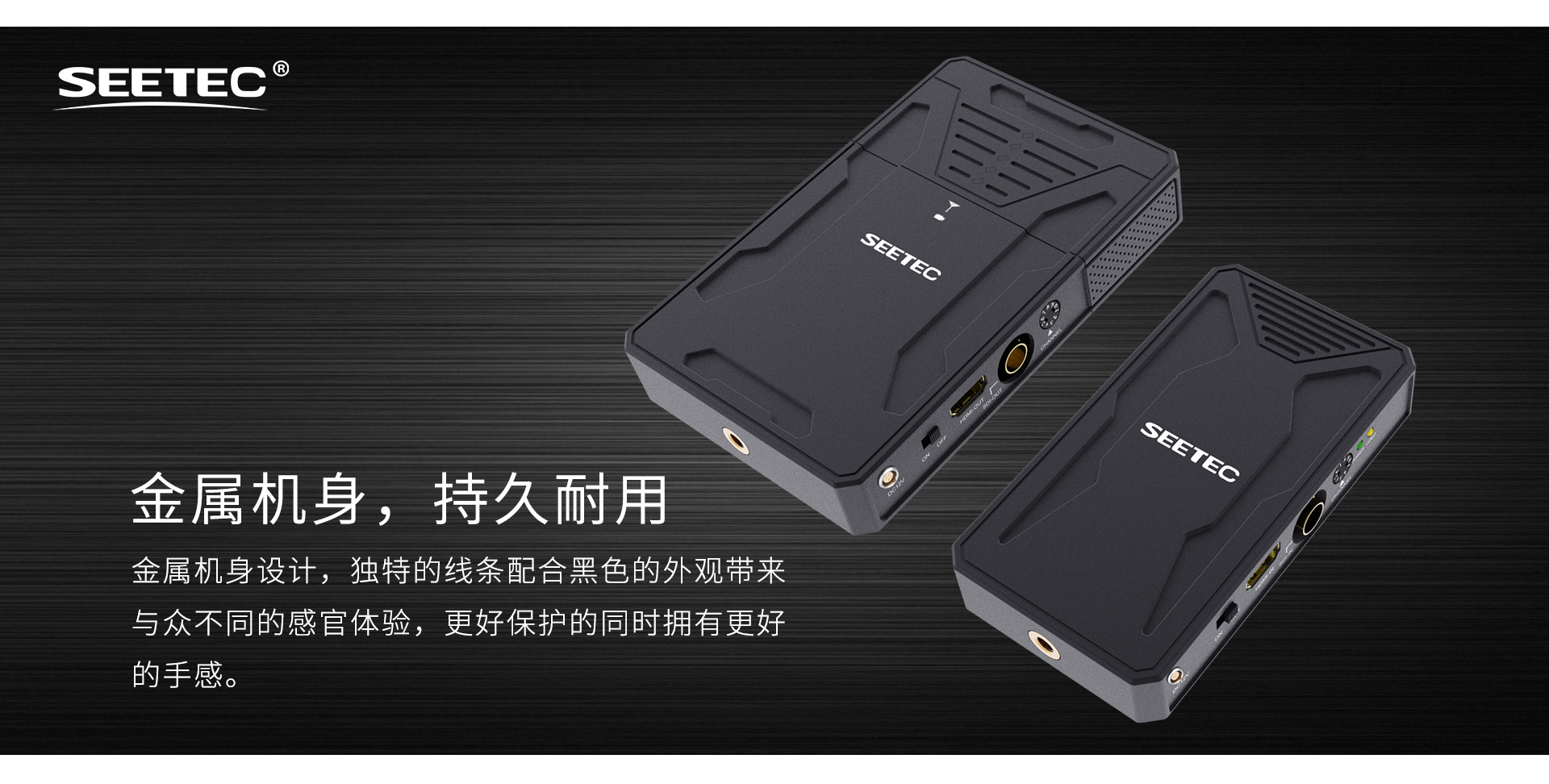 SEETEC广播级高清无线传输系统,由发射端和接收端组成,采用WHDI(OFDM)无线传输技术,支持3G/HD/SD-SDI或者HDMI 1080P全高清信号无压缩传输,作为图传时,有效距离150米,最大传输距离200米。频段采用5.1-5.9GHz,支持用户拨码设置频点,为发射端和接收端配对,还支持广播模式,可以把多个接收端设置成跟一个发射端相同的频点,实现一发多收。纯硬件连接操作,简单可靠。设计精巧,配有外接索尼 F970电池扣板,便于安装电池,方便移动拍摄。广泛应用于电影拍摄、无线摄录、影视监看、运动赛事、婚庆直播、活动直播、会议直播和商业秀等场合;真正实现高清无线直播、移动实时直播、多点无线直播、远距离监看。