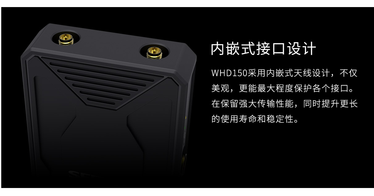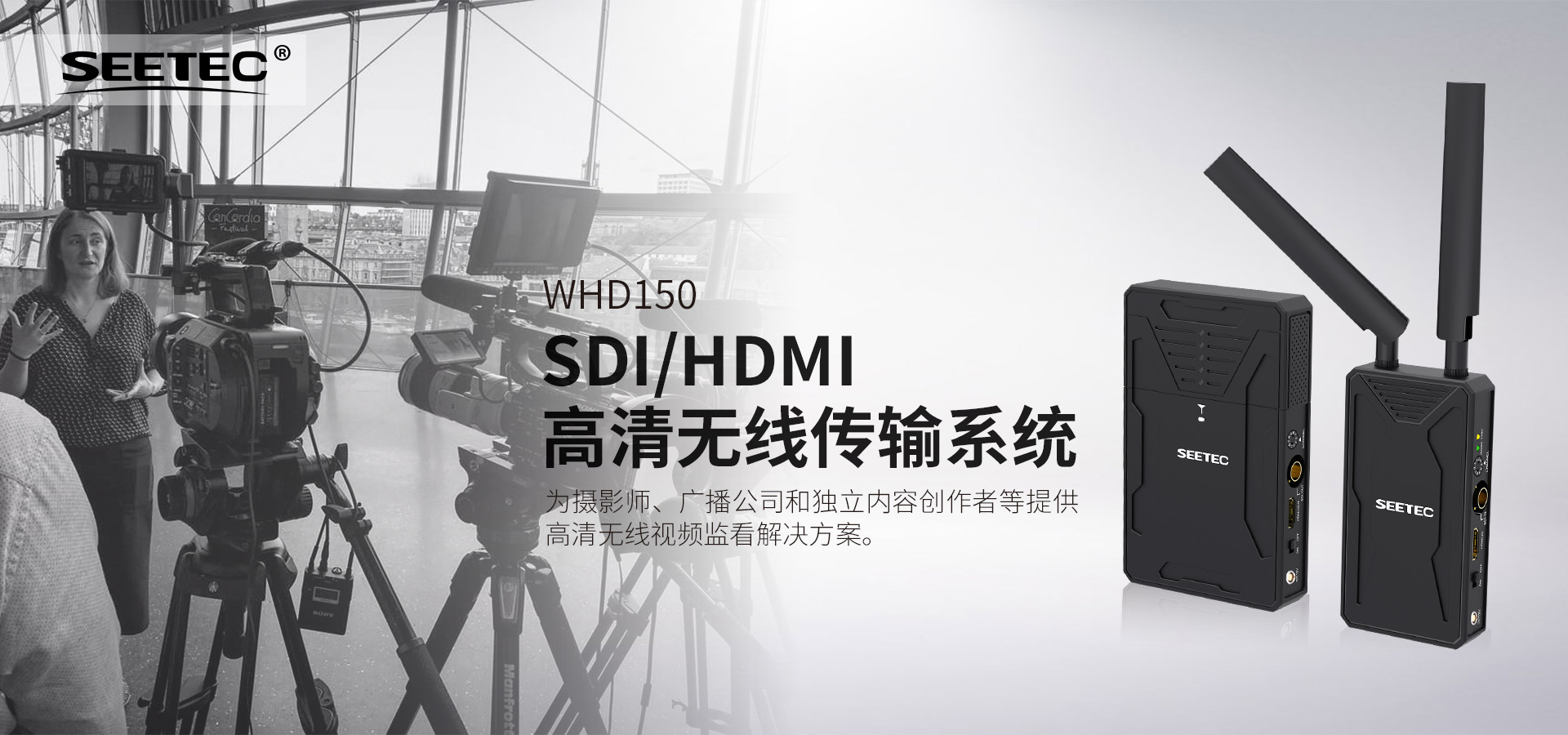 WHD150是广播级高清无线传输系统,包括发射端和接收端,采用WHDI(OFDM)无线技术,支持3G/ HD/ SD-SDI和HDMI 1080P全高清信号150米无压缩传输(最大距离200米),传输延时≤1毫秒。纯硬件连接操作,简单可靠,广泛应用于现场拍摄和导演监控。
