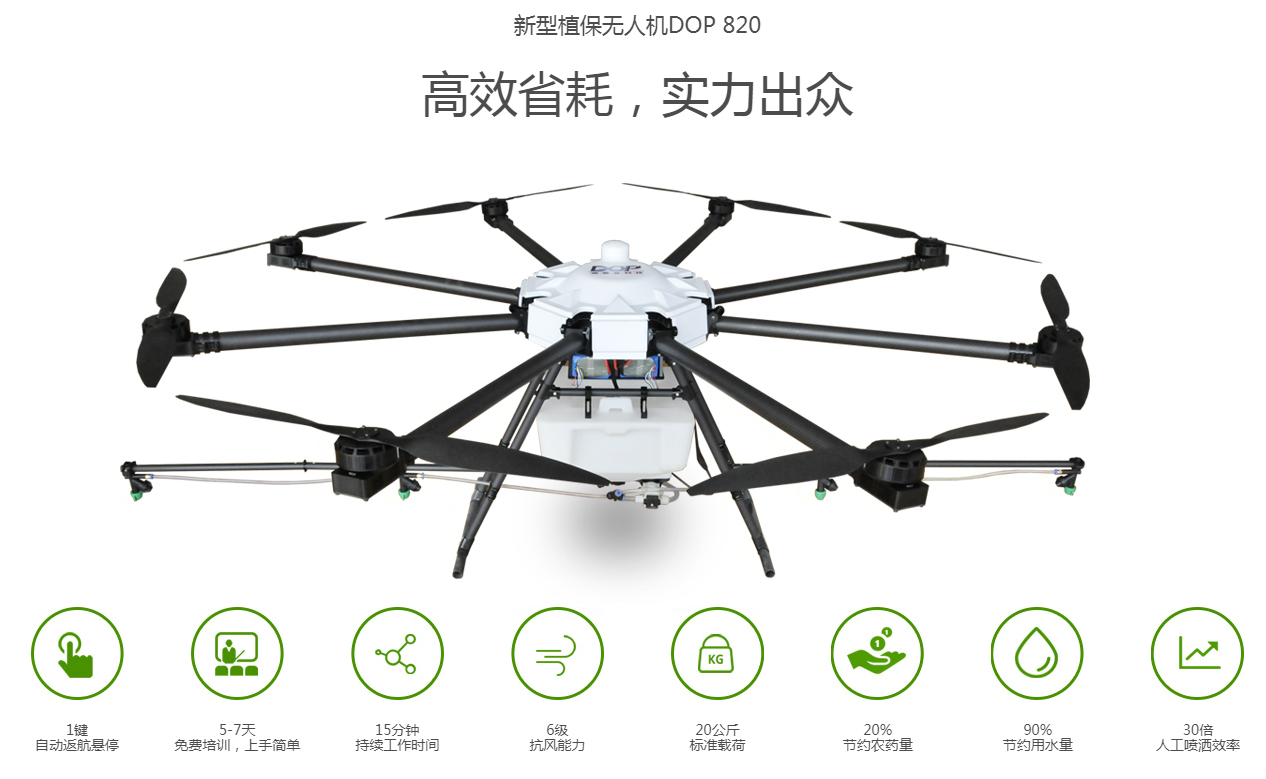 和其他的农业植保无人机和直升机对比,迪奥普农业植保无人机造型简单,时尚,动力强劲,作业高效,可广泛应用于水稻、小麦、玉米、果树、森林的喷药服务。迪奥普农业植保无人机,您的智慧之选。