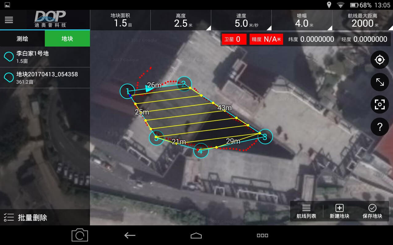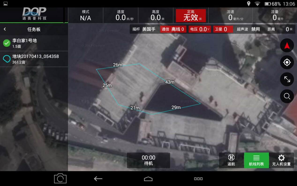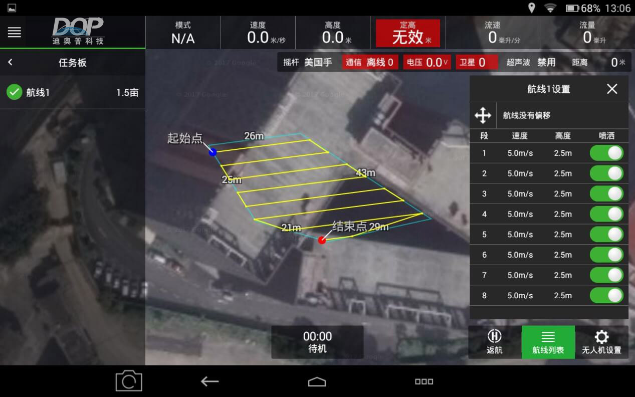 相对于传统飞行器依赖GPS的绝对定高,迪奥普农业植保无人机更符合农田作业的需要。飞行平台加入了地面站自驾飞行系统,可以根据农作物种植区域地面高低不平的变化,保持作业高度的恒定,保障喷洒的质量。