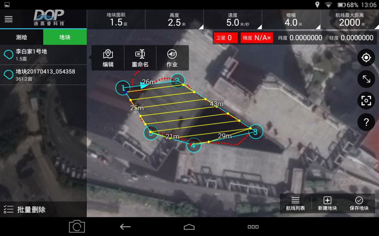 迪奥普农业植保无人机具备断点巡航功能,当无人机没药或则电力不足时,可自动记录和定位前次喷药断点,避免重喷漏喷对农作物的危害;针对农田中障碍物影响,该飞行器还具备障碍物自动报警、障避功能。