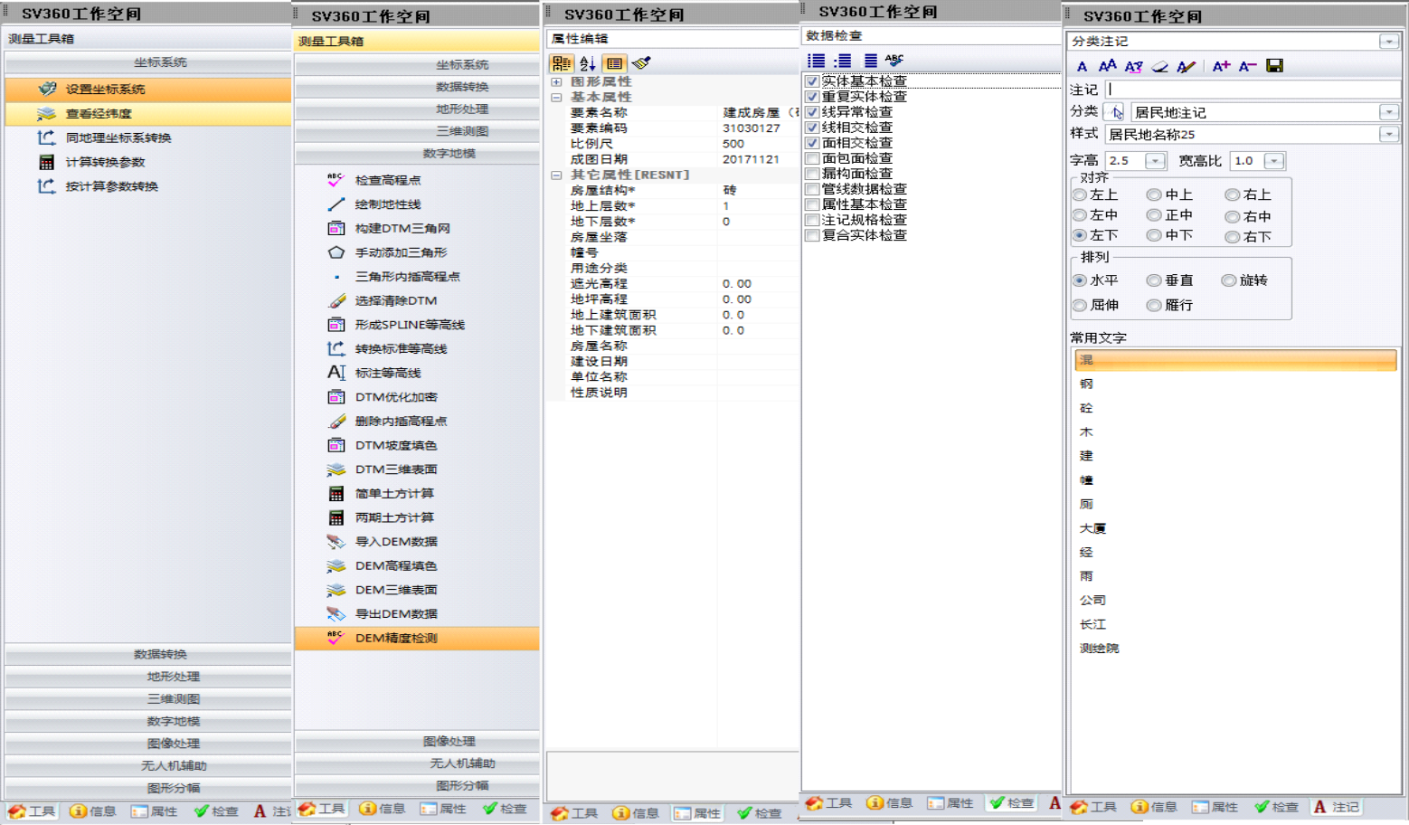 “SV360智能三维测绘系统”是基于多版本AutoCAD平台开发的测绘软件,以“智能、专业、高效、开放”为设计目标开发的新一代地理数据采集、编辑和建库系统,力求做测绘地理信息行业的360软件。系统集成了三维测图、坐标系统、地形处理、图像处理、数字地模、无人机辅助、不动产调查、土地确权、部件普查和数据转换等专业测绘模块。