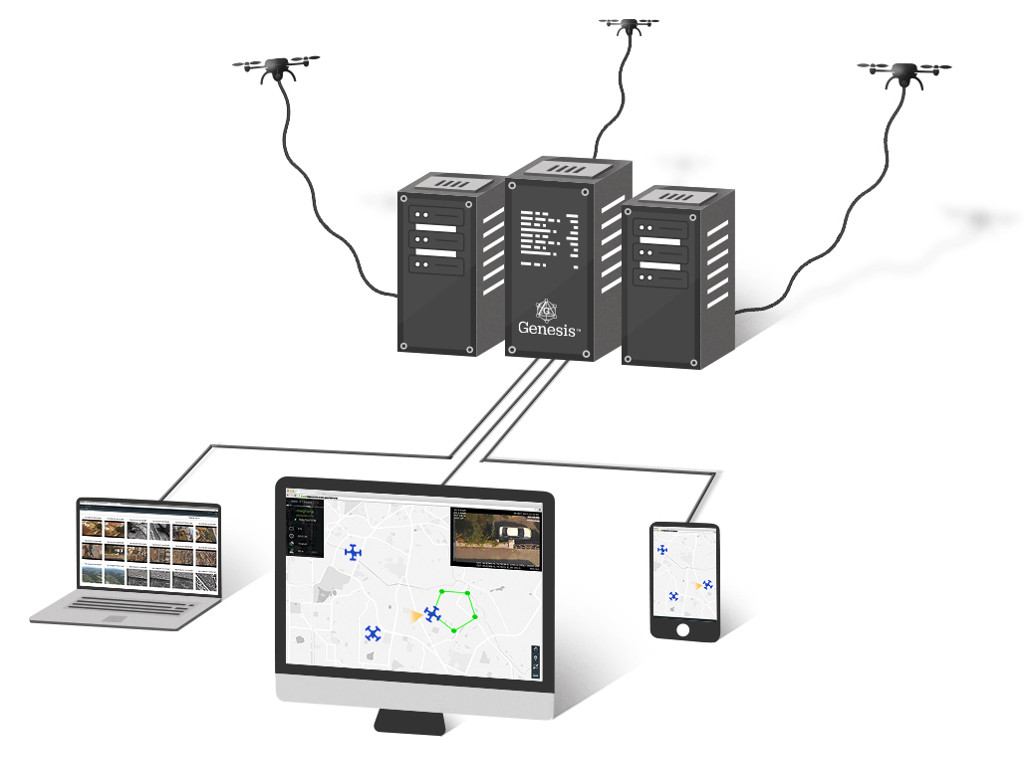 Genesis将多个无人机连接到组织中的多个用户,使他们能够访问来自无人机的实时视频,图像,传感器和遥测数据。这为每个人提供了一个共同的操作画面 - 从中央指挥/控制室的决策者到移动快速响应团队。