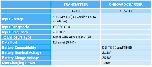 对于流行的DJI无人机型号,WiBotic提供完整的系统,包括一个发射器和发射器天线,一个板载充电器和接收器天线,一个电池充电/接口电缆,用于系统配置和监控的WiBotic GUI软件,以及访问我们的网络API以实现更深入的集成。所有WiBotic系统都已经过测试,可用于WiBotic PowerPad,也可用于第三方着陆垫和无人机机库。