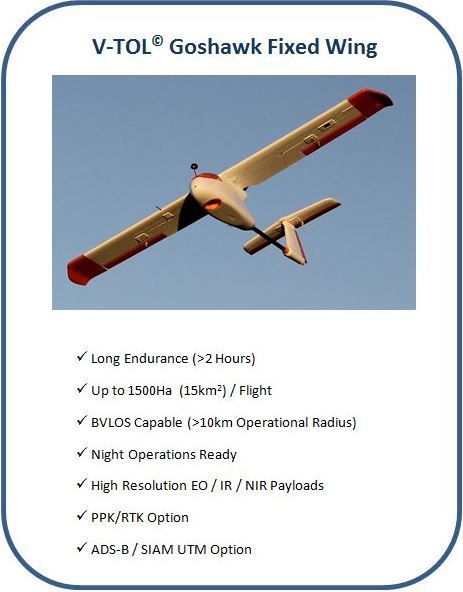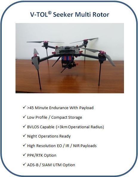V-TOL远程驾驶飞机系统(RPAS)固定翼和多转子/ VTOL无人机产品的设计和开发具有成本效益,安全,可靠,坚固且符合CASA(ICAO)标准。