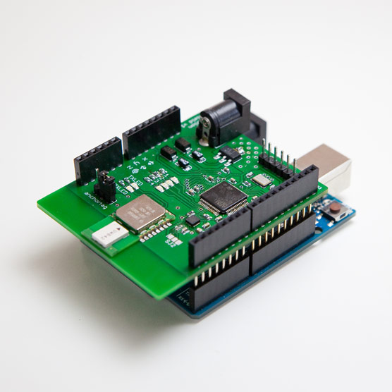 安装在Arduino上的Pozyx标签的图像(此图像来自标签的旧版本)。