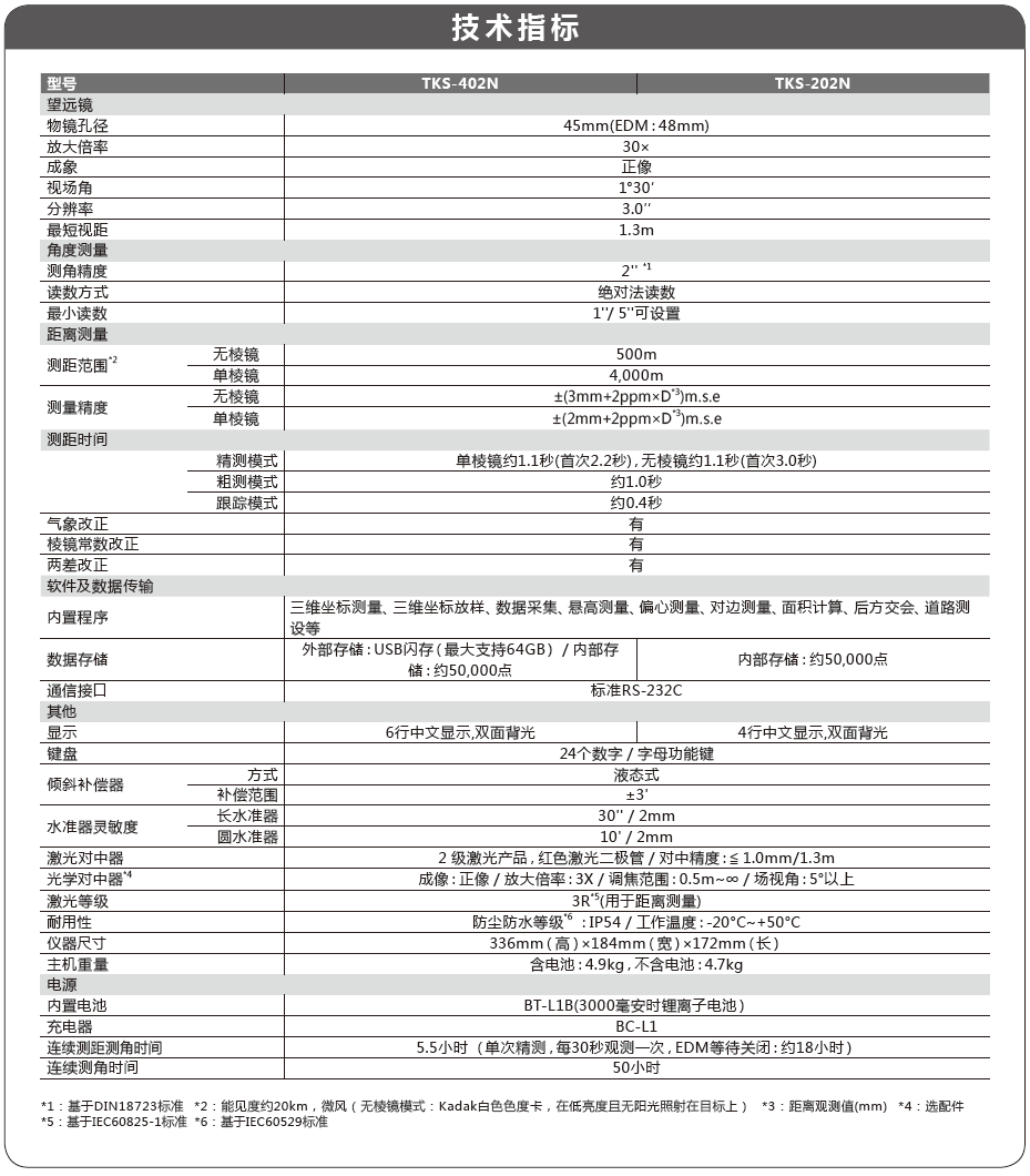 TKS系列全站仪在同级别产品中拥有无与伦比的真实无棱镜测距精度,在测距范围内实际最高精度可达到±(3mm+2ppm×D)m.s.e。该测程和精度均为实际测量环境中能够达到的技术指标,真实可靠。