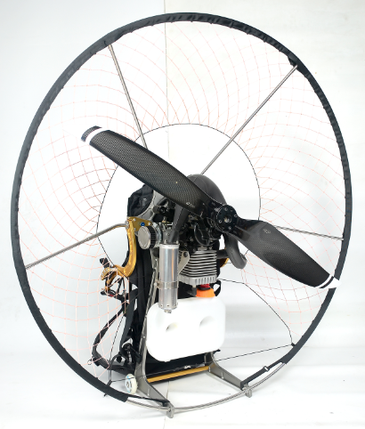 由滑翔伞加装发动机框架及载人坐袋组成。飞行时间1-5小时。动力伞的最大优点是起降灵活,受场地限制小,携带方便。适用范围很广,主要用于休闲娱乐飞行,航空摄影等。主架采用6061铝合金数控CNC加工,喷丸彩色阳极化表面处理,支杆和外圈采用冷拉无缝不锈钢管,镜面不锈钢抛光,氩弧焊焊接工艺。护网采用耐老化尼龙材料手工编制,配备防静电白色半透明油箱。配备PU高弹力移动轮。全不锈钢圆头螺丝锁紧。采用低挂点摇臂配置,操纵灵活方便,坐姿舒适,重心多点可调。采用无工具快拆设计,结构简练,重量轻,体积小。真正碳纤维材料螺旋桨,高硬度泡沫填充,超薄设计,效率高,推力大,表面光滑亮丽,配备专用桨袋安全防滑伤,对叉设计,拆卸后可缩短一半长度,便于携带。人机工学特性坐袋后背有加厚海绵填充,起飞后坐姿舒服,低挂点配置,操纵手柄时不用象高挂点那样举的老高,感觉更舒服。左右侧摇臂月牙型设计适应人体轮廓,美观大方,整机体积小巧,占用空间小。全部设备简单拆卸后可放入一个航空拉杆箱内。重量轻至18.5公斤。注册后下方可见维修手册、产品说明书、发动机说明文档下载。