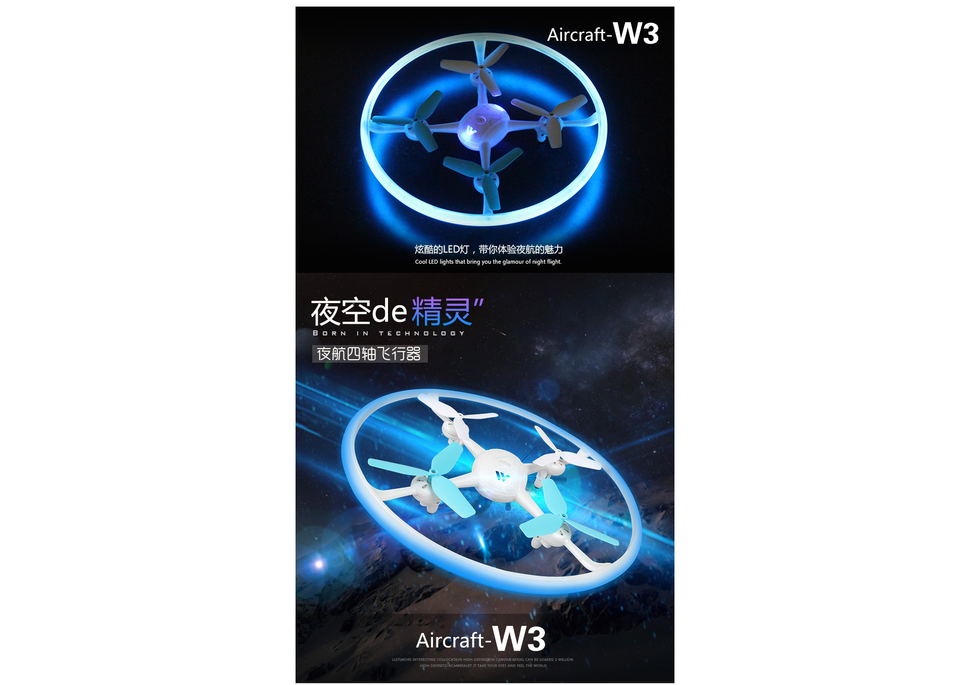雅得W3夜精灵炫酷灯光无人机