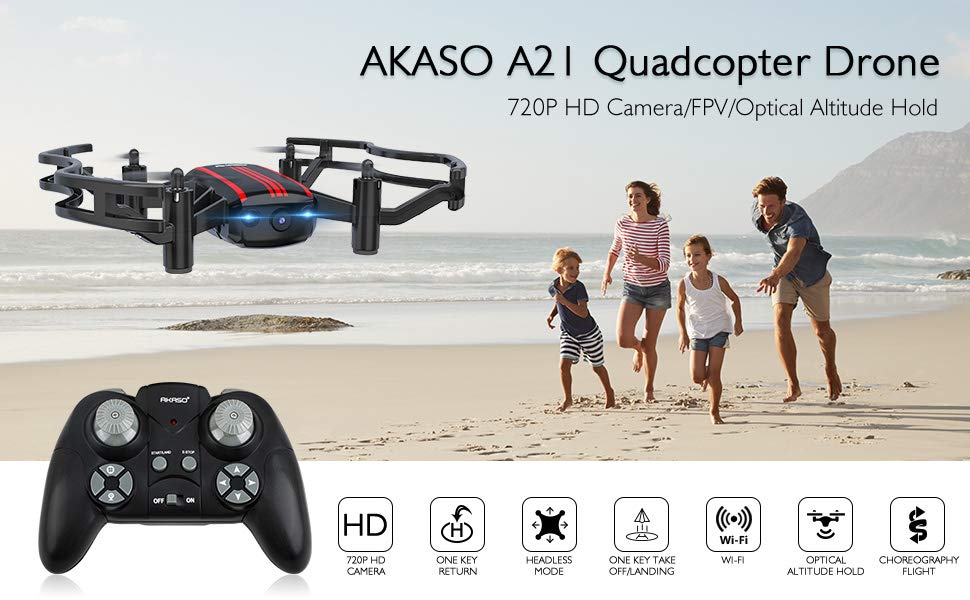 AKASO A21 Quadcopter无人机与相机720P高清直播视频FPV WiFi自拍RC无人机玩具儿童初学者成人