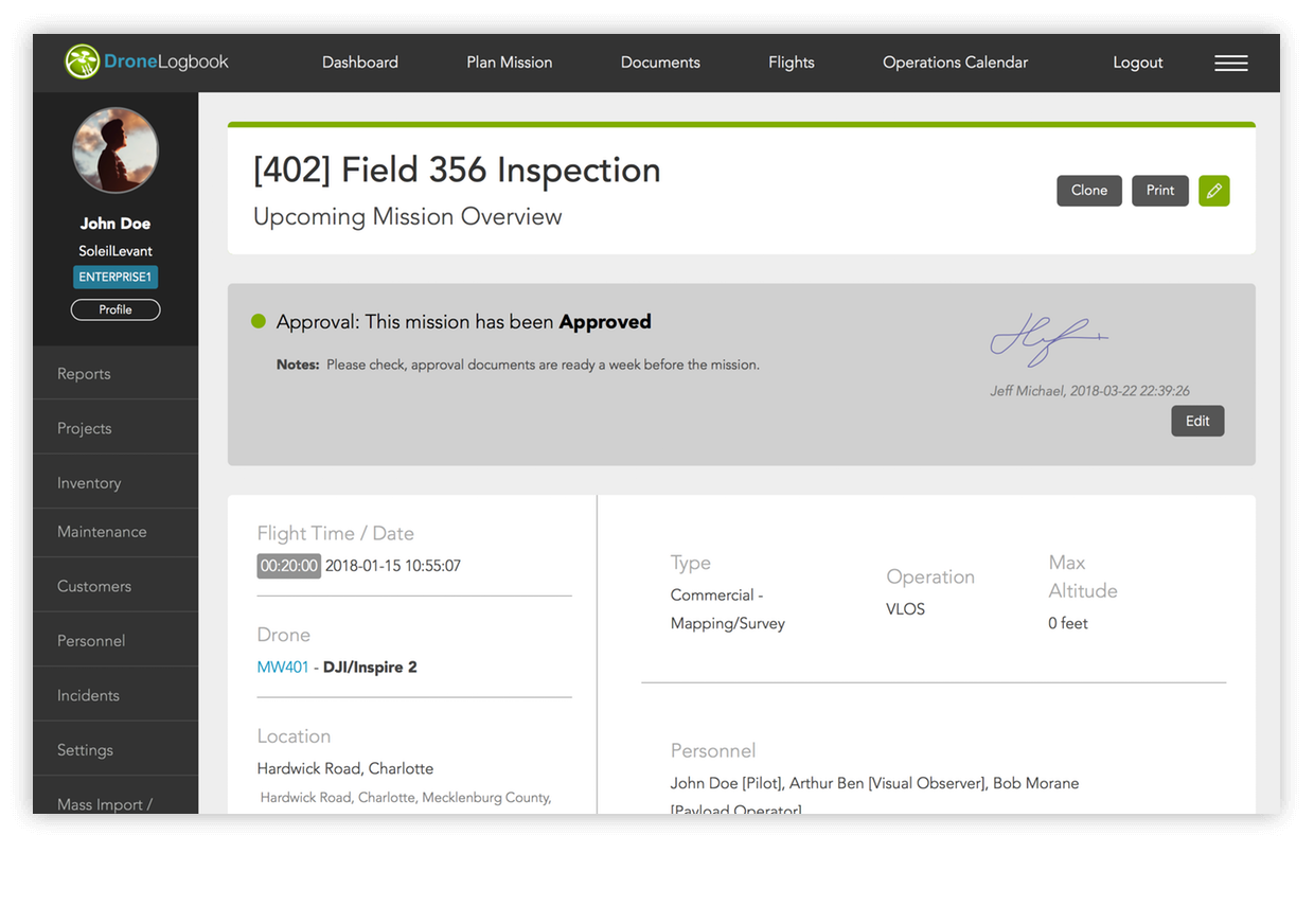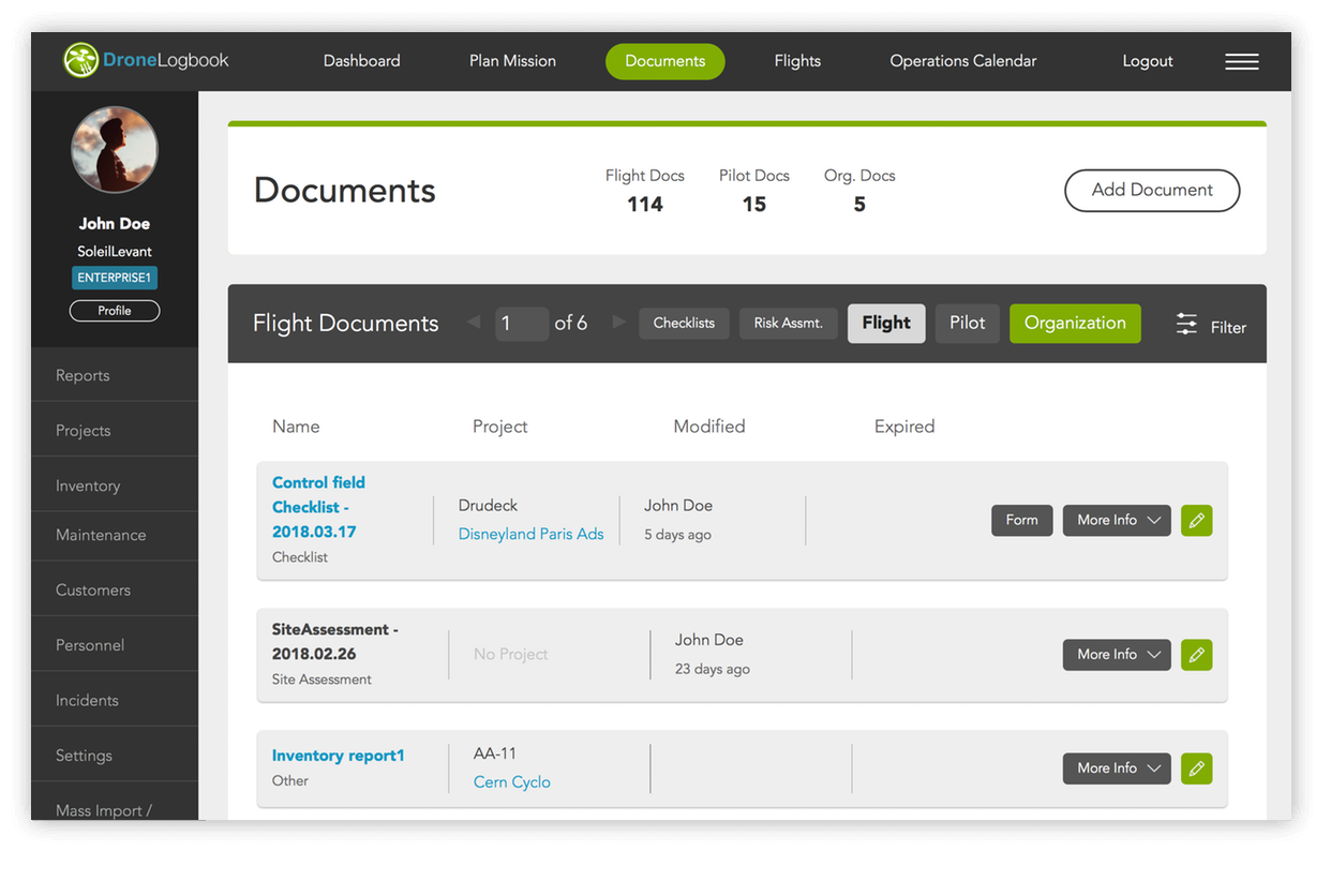 DroneLogbook提供了一个带有自定义清单和风险评估表的数字文档库。此外,如果需要,您可以上传其他表格的硬拷贝。