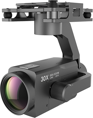 普宙无人机30倍变焦可见光相机云台(GTZMHD 30X)主要适配GDU SAGA(鹏)系列及以上的行业无人机产品,变焦范围6~180mm(35mm等效焦距为27~835mm),能够录制30fps的4K高分辨率视频,拍摄1200万分辨率照片。通过搭载云台集线盒,也可适配其他品牌无人机。该云台采用了全新姿态融合控制算法,打造高精度三轴增稳云台。角度抖动量为±0.01°,即使在做大机动飞行时,也能拍摄稳定的图像和视频。