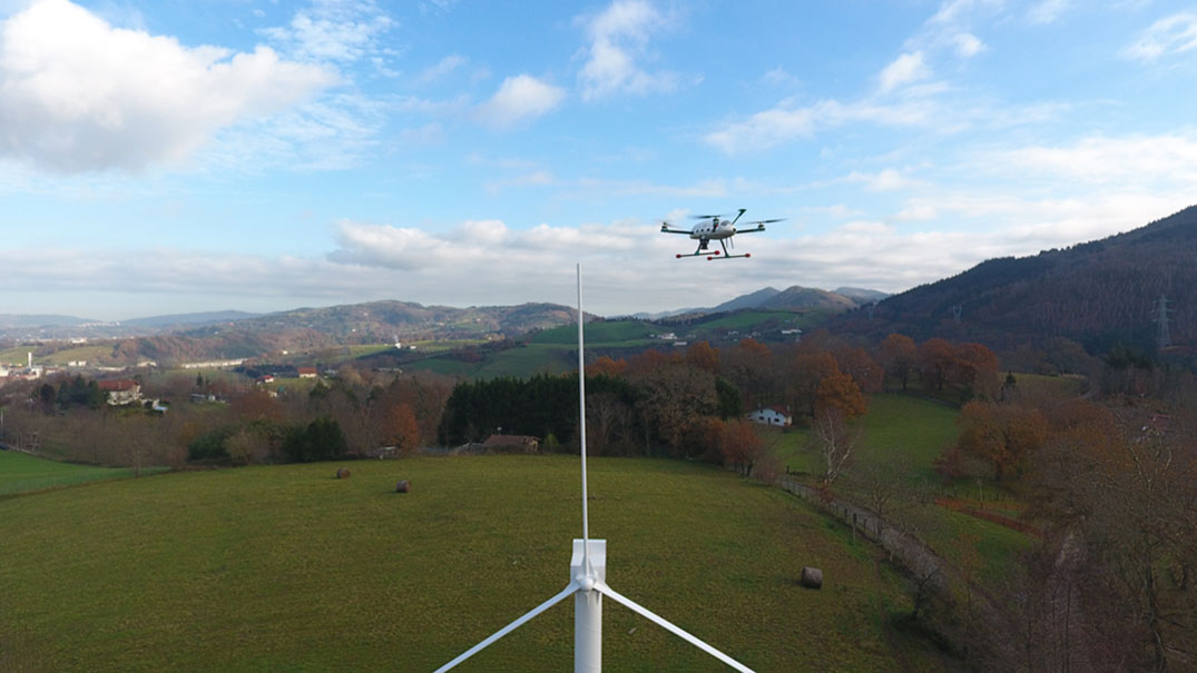 全自动RPAS,只需按一下按钮,即可自动执行检测,并实时识别风力涡轮机的缺陷。