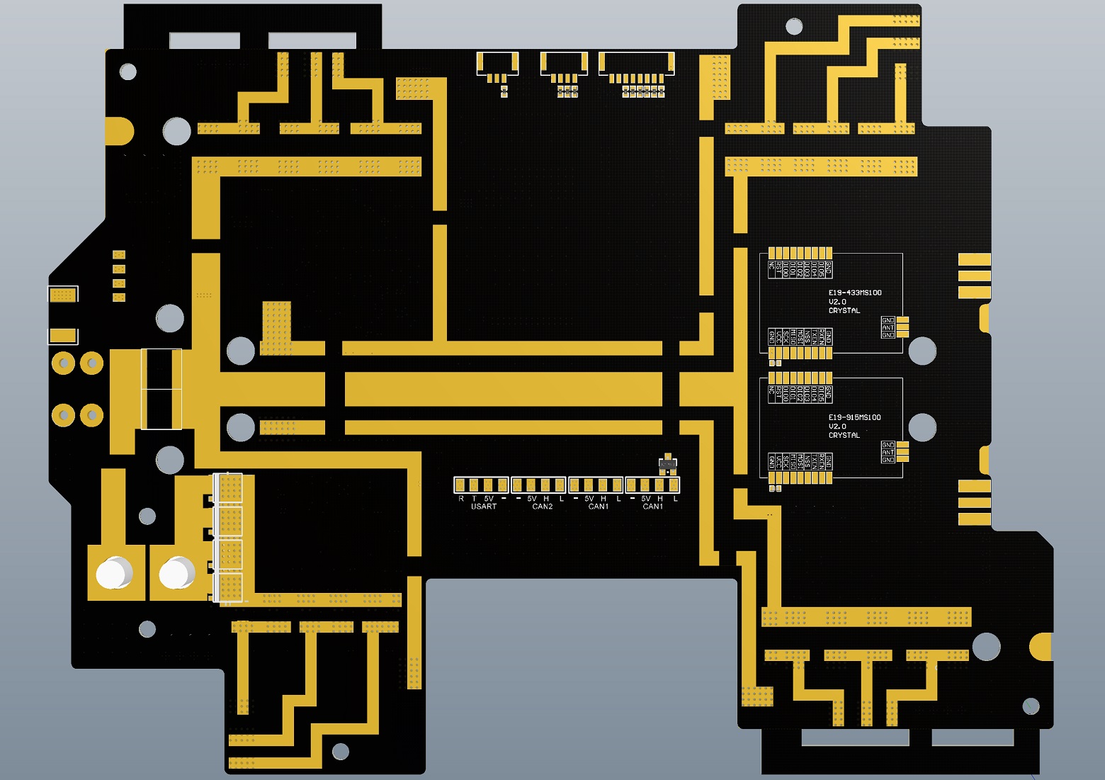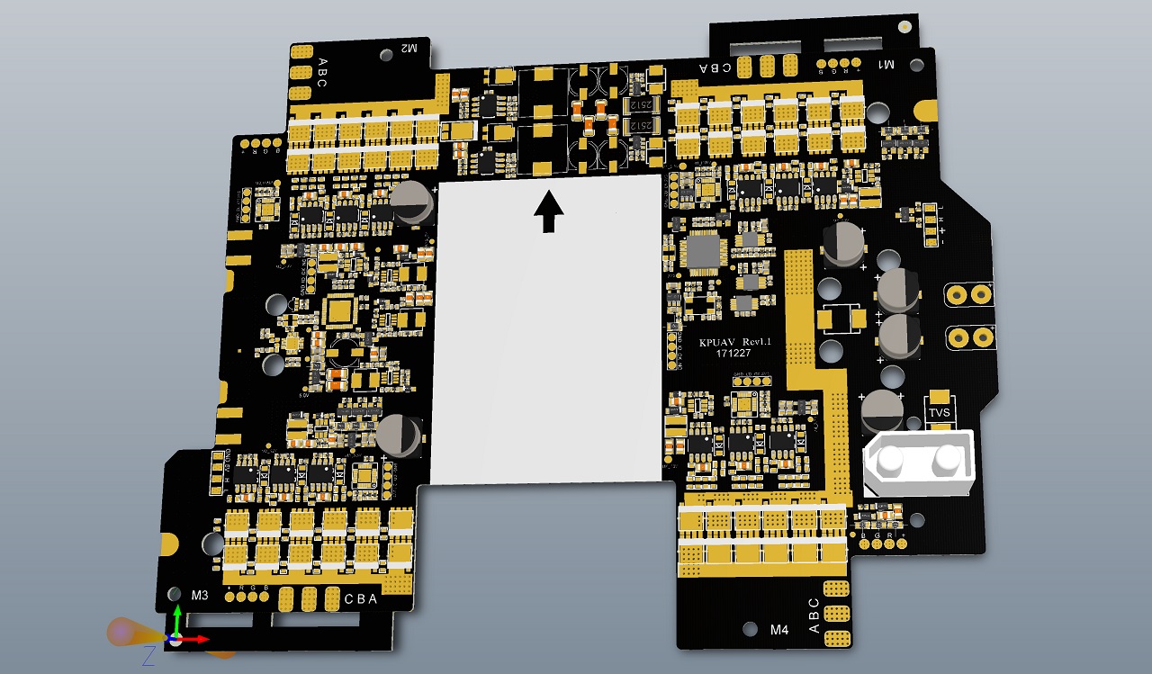 中心电路板集成模块:电源管理模块、40A电子调速器模块(可定制更低成本电调)、数传模块天空端、智能电池通信模块、BEC模块 x2、分电盘