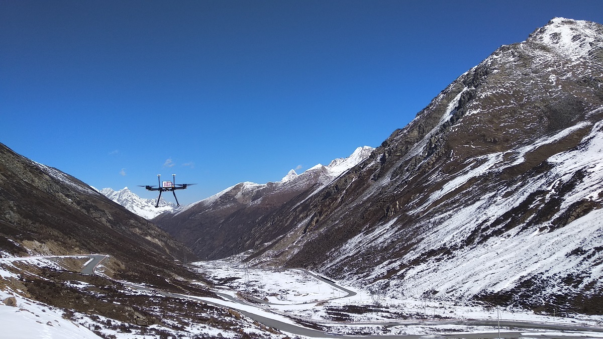 四川阿坝自治州四姑娘山山腰飞行测试,海拔4200米,普通1555玻碳折叠螺旋桨(非高原桨,如在此海拔飞行建议采用大螺距高原桨),续航时间37分钟