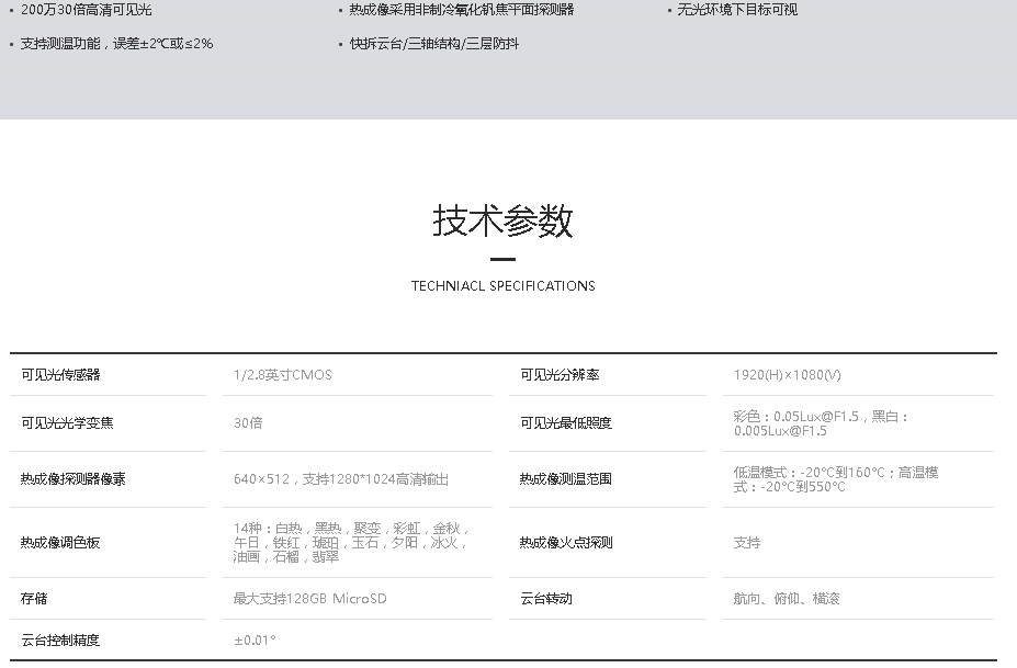 红外双目热成像具备可见光和热成像同时成像的效果,可用于设备检测,空中巡逻等应用场景。