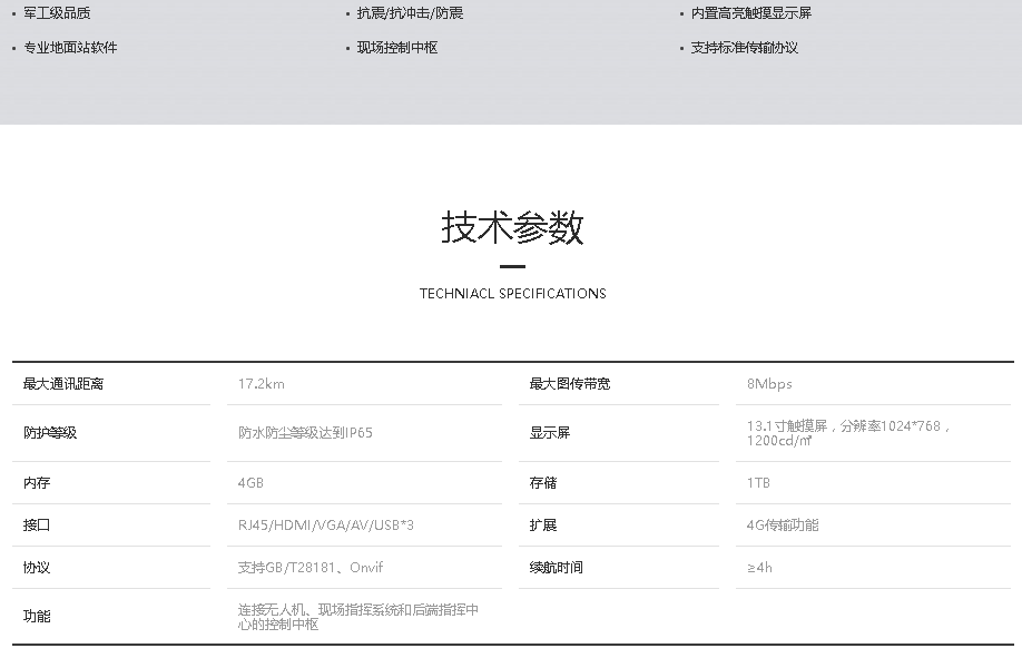 地面站内置13.1寸触摸显示屏,便于现场指挥员使用。