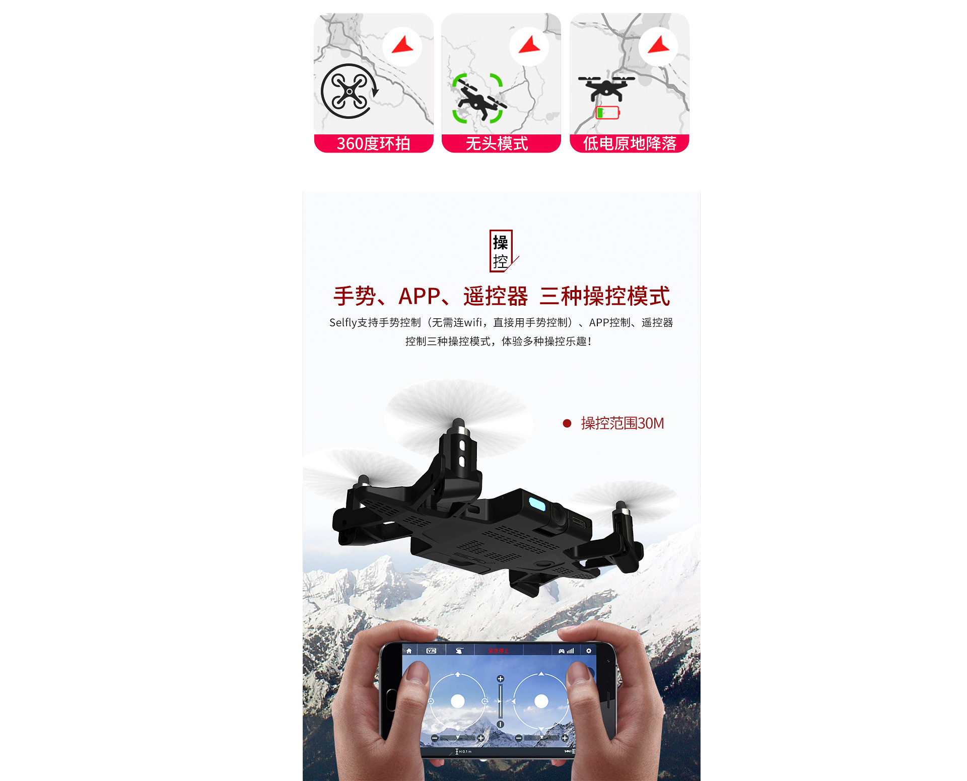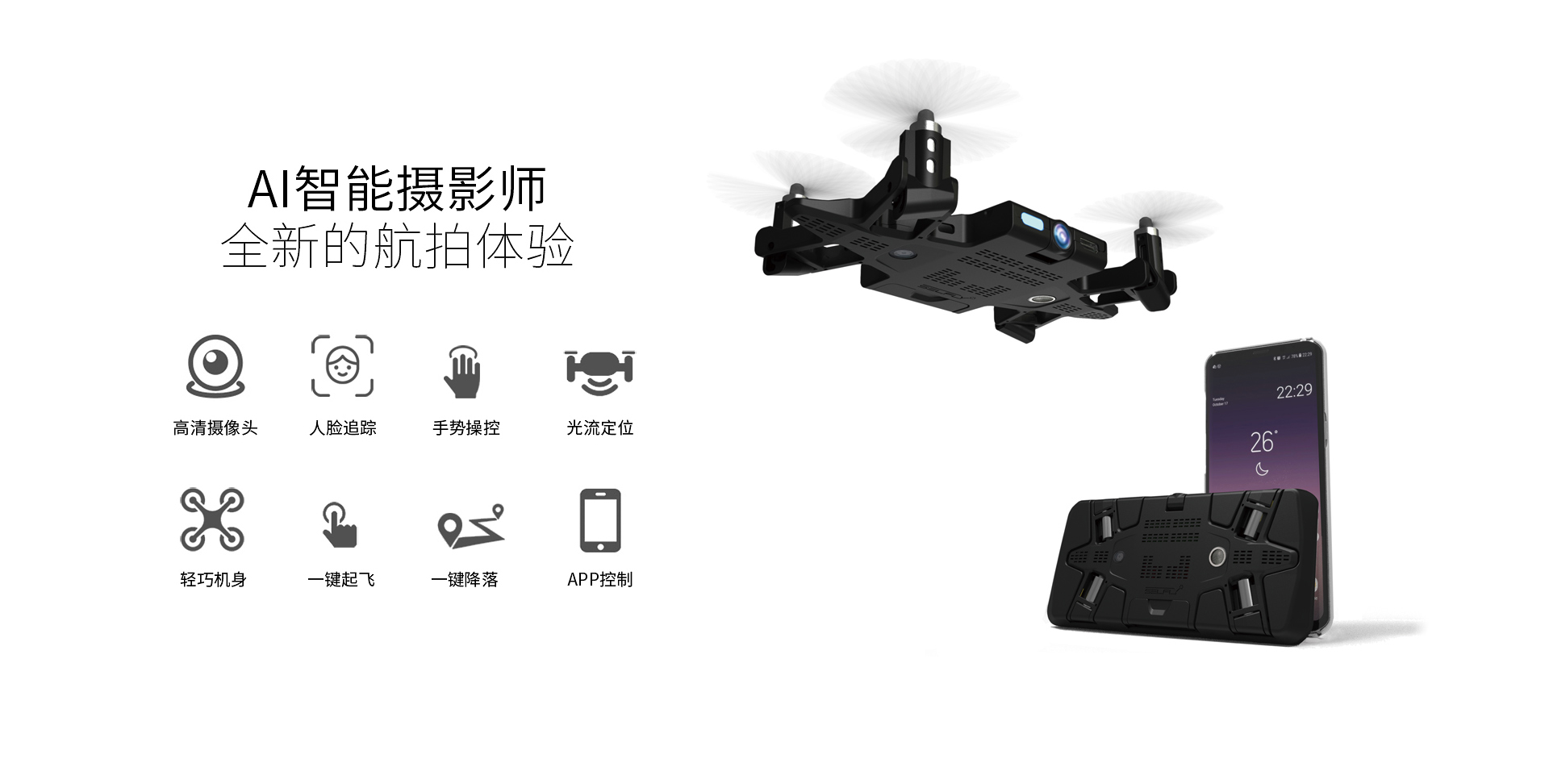 selfly手机壳自拍无人机轻巧的机身设计,