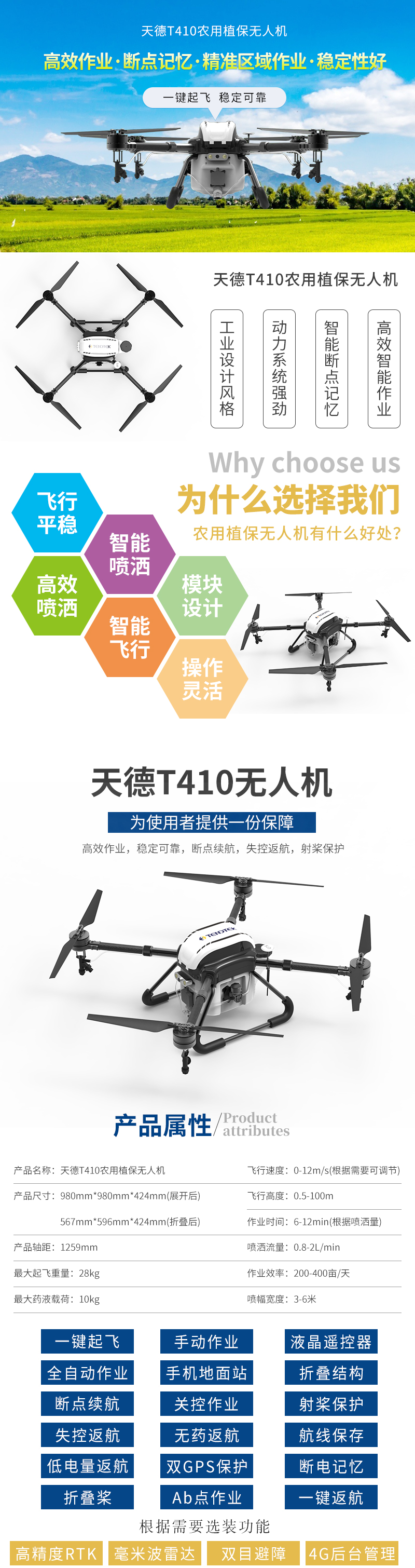 天德T410农用植保无人机