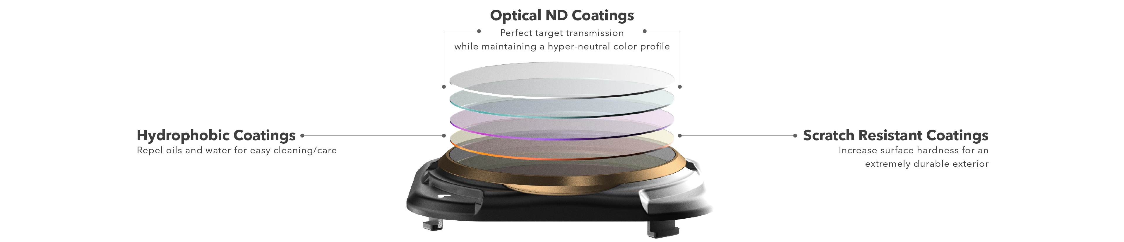 我们采用了最受欢迎的滤镜,并为Mavic 2 Pro精心设计了滤镜。选择2-5个停靠点,非常适合午后或黄金时段飞行,或者6-9个停靠点,非常适合中午或明亮场景。通过利用激光刻蚀的停止指示器来精确降低快门速度,而不必更换滤镜。每个过滤器均由航空铝框构成,旨在确保云台优化和安全。