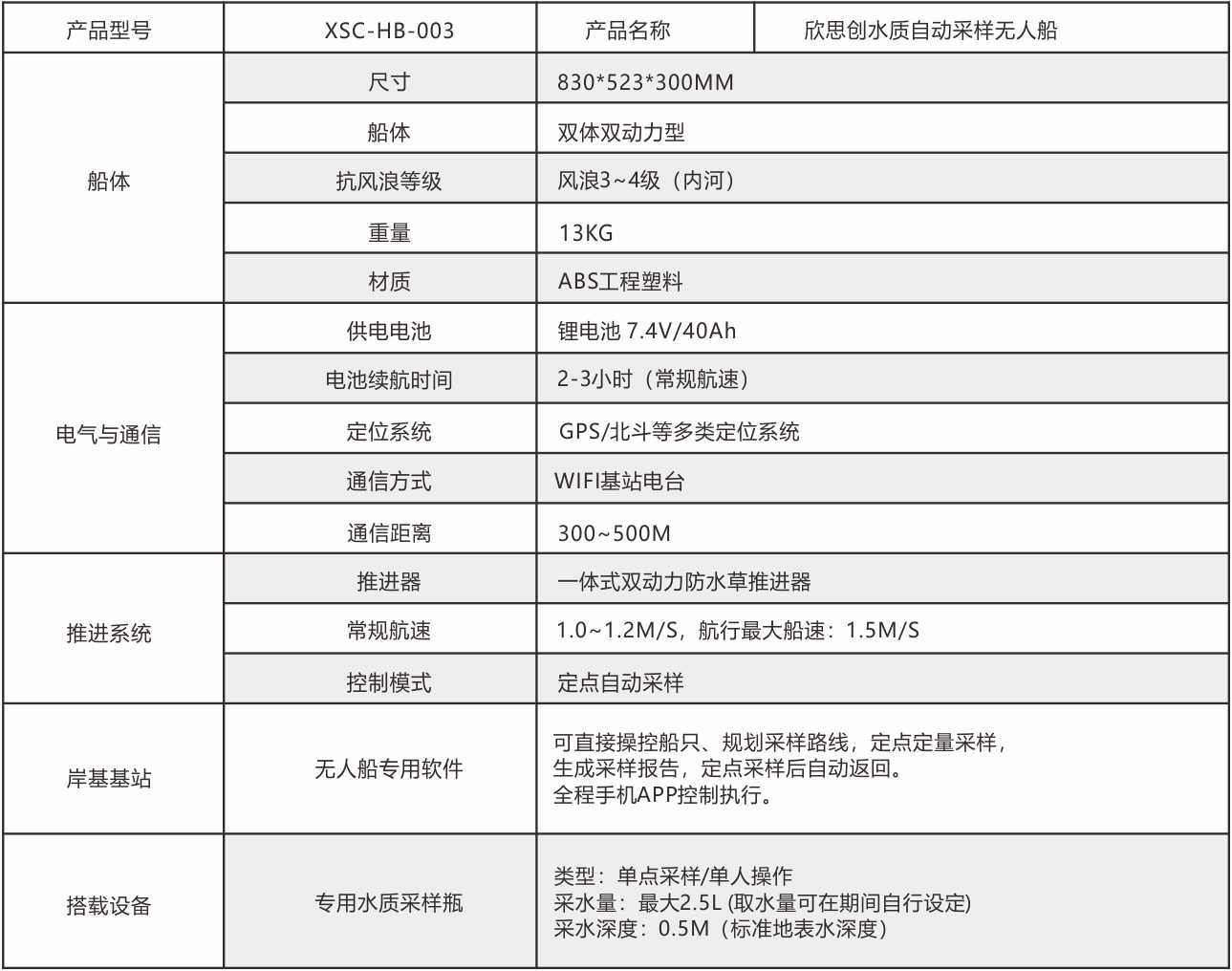 具有安全高效的无人化作业、移动式连续采集水样、智能控制定点定量定深采样、自主导航、远程视频监控(选配)等功能的欣思创水质自动采样无人船可实现较大范围的水质采样、水体富营养化采样调查、应急水污染事故采样等常规和突发应急采样作业,可广泛用于环保监管、水利水务应急、第三方水质监测等领域。