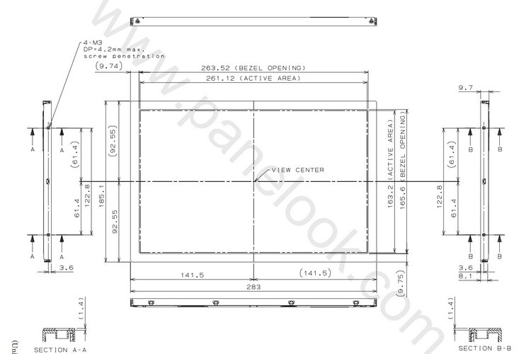 | 驱屏电压 | 3.3v | 显示区域 | 261.12*163.2 mm |