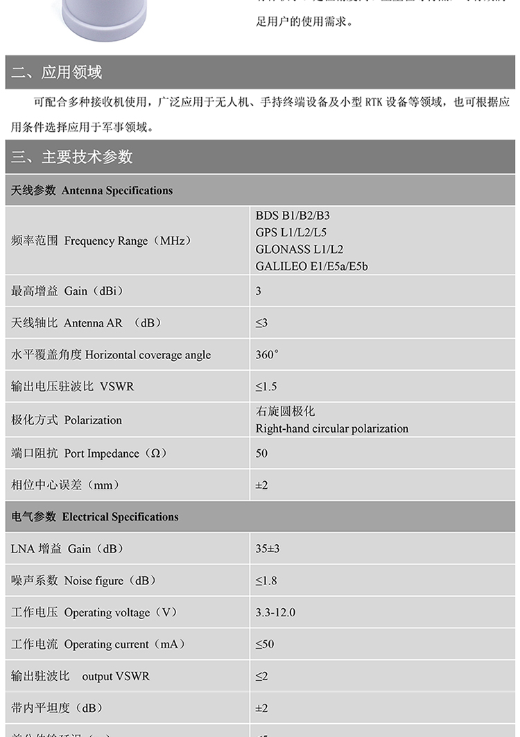 北天GNSS天线四星多频农机驾考蘑菇头天线测绘RTK高精度BT-160