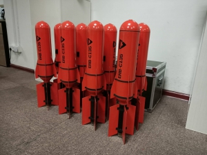 2.灭火功能:一枚应急救援弹的重量4kg±100g,灭火介质填充不小于3KG;可一架次挂载1-3枚应急救援弹。灭火剂可选填充ABC 类超细干粉灭火剂或水基类灭火剂,对30m²-90m² 平方的密闭空间火情进行压制;