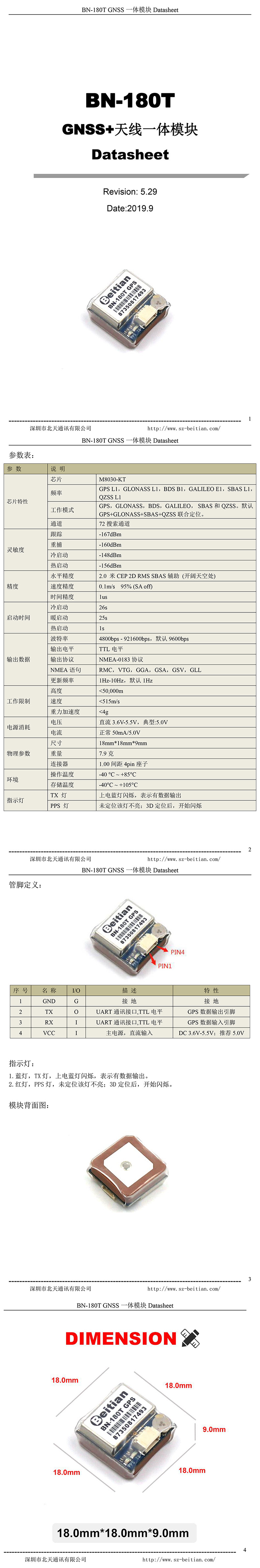 3.BN-180 GPS一体模块尺寸18mm*18mm*6mm