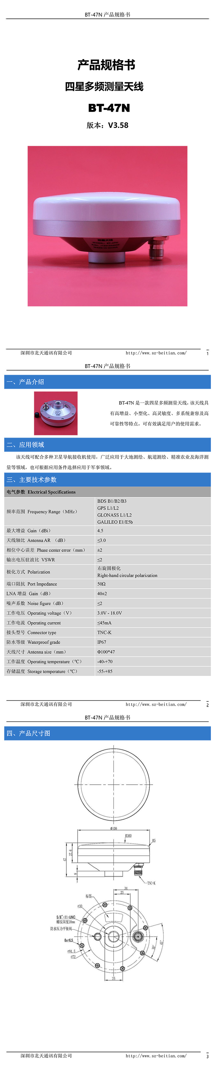 BT-47N是一款四星多频测量天线,该天线具有高增益、小型化、高灵敏度、多系统兼容及高可靠性等特点,可有效满足用户的使用需求。
