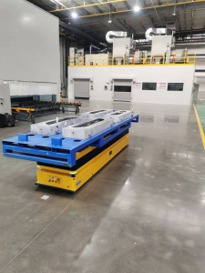 将无人机整机拆分成几大部件,结合模具托盘将产品分为几类,由自动输送设备进行流转,实现整机部件的自动喷涂。