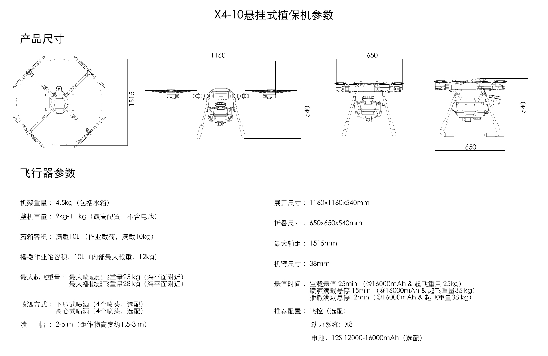 X4-10P 悬挂式农业植保机结构