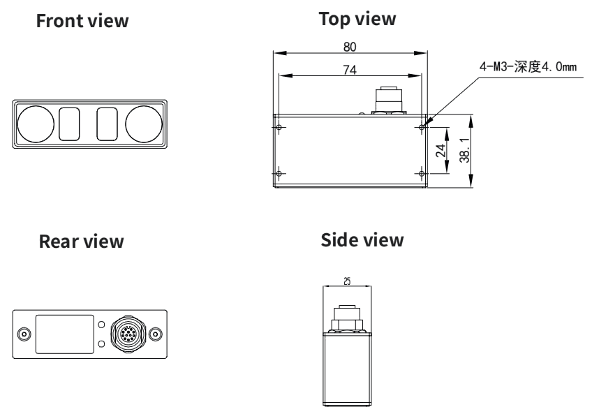 | 工作距离 | 0.2m-3m (90% 反射率) 0.2-1.2m (10% 反射率) |