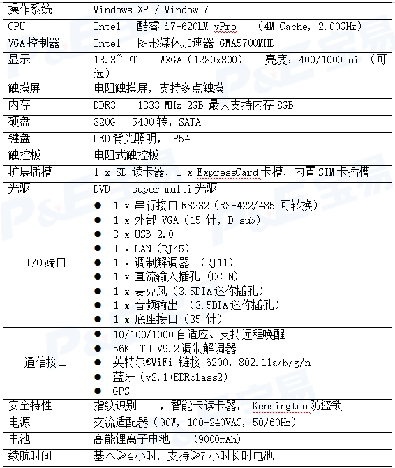 ●采用IntelCore i7 vPro超强性能低功耗处理器平台,满足移动数据处理平台的各种数据处理的需求。