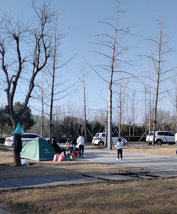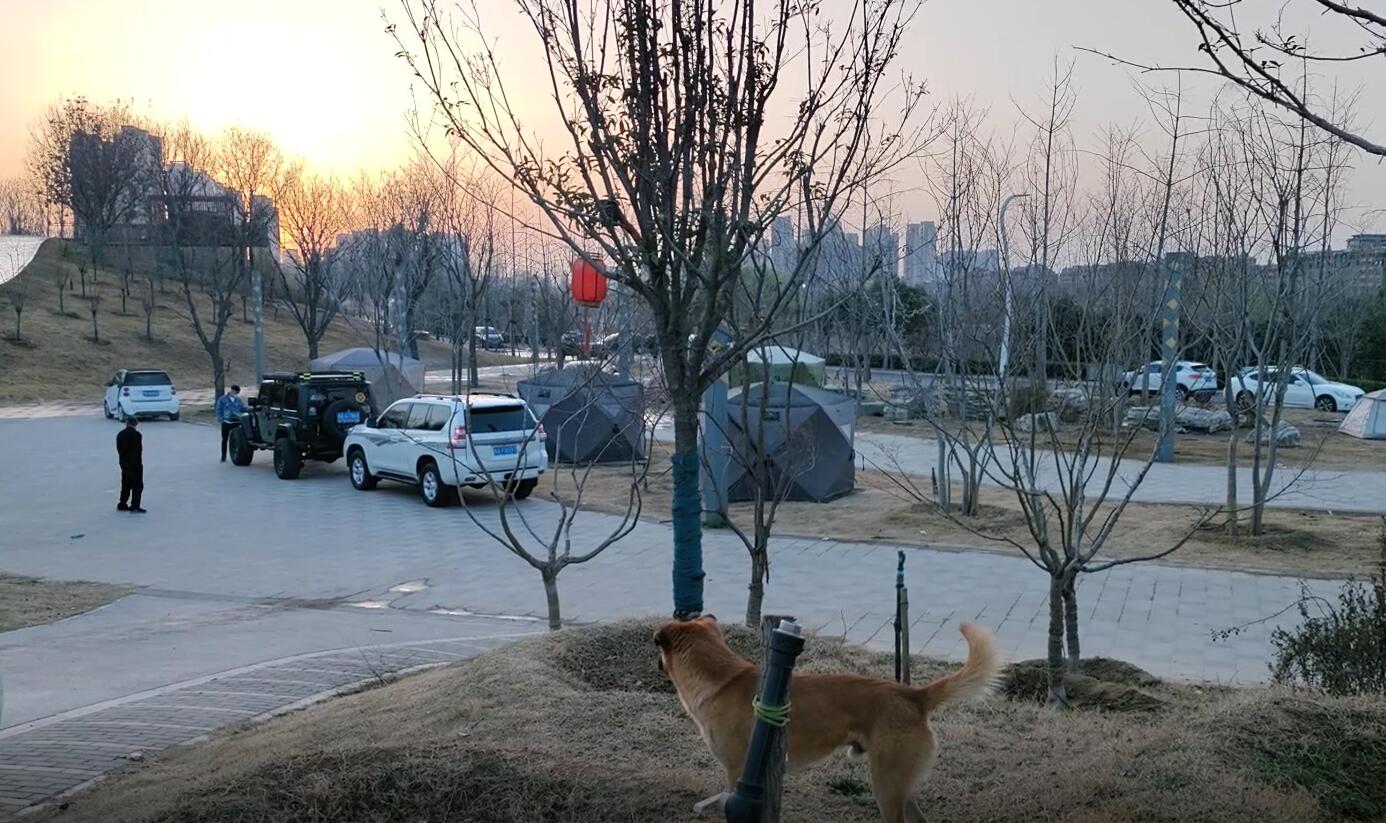 贾鲁河露营地位于贾鲁河畔,地方挺大,地势高且平坦,草地还是枯黄的,没有返青。容纳二三十顶帐篷不是问题