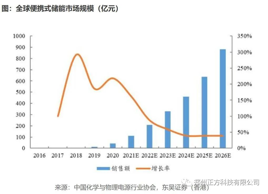 得益于锂电池技术突破带来的能量密度大幅提升,搭载锂电池的储能产品在保证续航能力的同时能拥有更大的便携性,将更好地满足户外场景下的便捷电力需求。据中国化学与物理电源行业协会预测,全球便携式储能电源市场规模将从2021年的111.3亿元继续增长至2026年的882.3亿元,年复合增长率将达到51.3%。