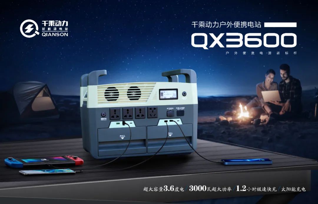 便携式储能(户外储能)在全球市场爆火,其作为新能源储能的细分赛道再次引来众多关注。相关数据显示,过去4年里,便携储能的市场规模增长了23倍。其中,美国和日本市场的占比超过了75%。虽然我国便携式储能电源行业起步较晚,但经过多年发展,国内便携式储能电源行业已成为全球最大的便携式储能电源生产国和出口国。数据显示,全球超90%的应急储能产品来自中国。2022年,便携式储能出货量中户外场景占比43.6%。这些场景一步步在中国更多的家庭中体现。从需求端来看,便携式储能的增长,首先来自户外活动需求的增长。一方面,疫情不断反复,人们迫不得已选择就地活动,因而对户外活动的需求更加强烈;另一方面,户外活动方式的转变,自驾游、露营、野餐、摄影等户外消费升级,户外电源成为短途用电主流。人们对户外生活质量的要求越来越高,安全性、便携性等用电需求增加。更多人的在露营自驾的路上,一定要带上一个户外储能电源,在荒无人烟的田野上,煮上一杯挂耳咖啡,再用插着充电线的手机发上一张朋友圈,就好像真的离开了俗务缠身的花花世界,脱离了钢筋水泥的渔网都市,来到了物我两忘的世外桃源。三、户外露营好选择 千乘动力QX3600哪些方面遥遥领先?在各大购物网站都可以看到储能电源火爆销售的场景,其中就包括一款一次可以带走3.6度电的户外储能电站。成立于2005年,具有多年智能锂电池应用与研发、生产经验的正方科技推出的一款户外电源爆品——QX3600新能源便携电站,以多个方面的卓越遥遥领先的功能得到了市场的认可和旅友的喜爱。这款产品为什么得到了那么多客户的认可呢,这要有以下几点,比起来同行的产品,可谓“遥遥领先”:我们搜索各大网上商城,发现现有市场上大多数户外移动电源,存储量都比较小,以300wh-2000wh的产品居多,电容量超过2000wh的户外便携电源产品数量并不太多。如果外出带的是容量较小的移动电源,遇到较长时间的露营或者充电不方便的情况,就会导致使用过程中捉襟见肘,掐着时间算电量,非常不方便,而正方科技推出的QX3600户外电源的主打性能就是容量大,电容量配置非常的硬核!它具有3600Wh超大容量电芯,一台机器,相当于储存了3.6度电;具备220V交流3000W输出功率,纯正弦波,不损伤电器。我们可以在网站看到,很多哪怕是知名品牌的户外电源输出功率都在2000瓦以下,这样的输出功率决定了其不能用太大功率的电器,而正方科技推出的QX3600完全没有问题,比如1800瓦的电吹风,2000瓦的电烤箱电磁炉、3000瓦的车载移动空调等大功率家电,一般户外移动电源的输出功率较小,带动这些家用电器几乎不可能,而QX3600千乘动力户外便携电站,输出最大功率达到3200瓦,带动这些电器,统统没问题,让我们无论在家做美味佳肴还是出行在外,都可轻松应对。QX3600户外电源提供了三种充电模式:市电充电、太阳能光伏板充电和车载充电。第一种是最常见的就是通过220V市电补充,在输入功率达到3000w时,只需1.2小时即可充至100%,储满3.6度电,速度之快,秒杀了市场上绝大多数户外充电电源品牌。一台户外新能源储能电源轻则数公斤,重则十几甚至几十公斤,搬动拿取很沉重,大部分户外电源都是一体化的,不具备电池拆分功能,对于力气小的露营者尤其是女士来讲就不太友好。而QX3600户外电源充分考虑了这个问题,采用特有的机芯分离式设计,可以直接把户外电源拆分为主机和两个电池包模块,电池包模块还配备了单独的直流输出,满足多种使用需求,支持热插拔电芯更换。QX3600户外电源高安全的固态电芯,经过了严苛的穿刺实验,使用过程中非常安全。其运用了正方科技专利BMS电池管理系统,能够检测温度、高精度电量、电量均衡算法等,实现高低温保护、过充过放电量保护、电池充电速率动态控制、电池电量自动均衡、显示器高精度的电量显示、电池健康状况检测等多项用电安全功能,让电源的性能大大提升。配备了电池管理系统的这款户外便携电源,无论是放在车上或者家里,都可以随时监控电池用量,绝对安全。